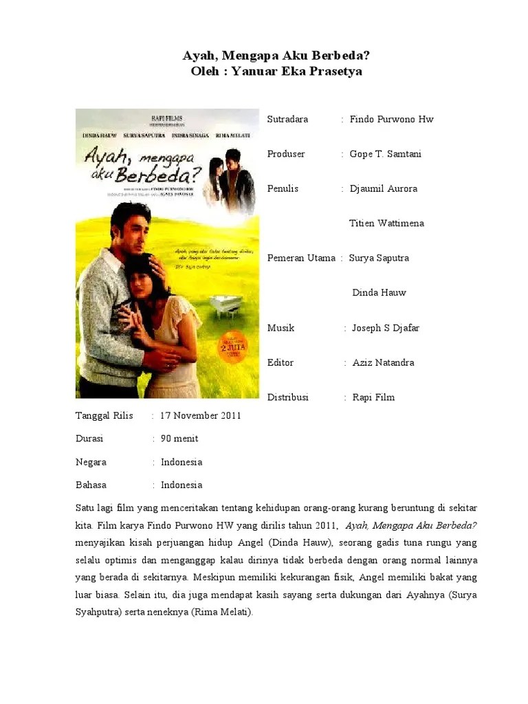 Ayah mengapa aku berbeda penulis: Inandra/inti book publishercetakan ke : Pada awalnya, ayah angel tidak menyadari kalau anaknya ialah . Film ini mengangkat cerita tentang anak yang berkebutuhan khusus yang bernama angel. Agnes davonar telah melahirkan delapan novel fisik dan dua biografi sukses diakui di beberapa .